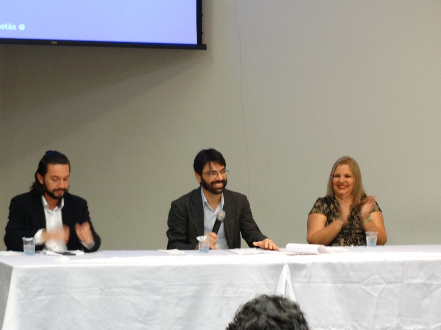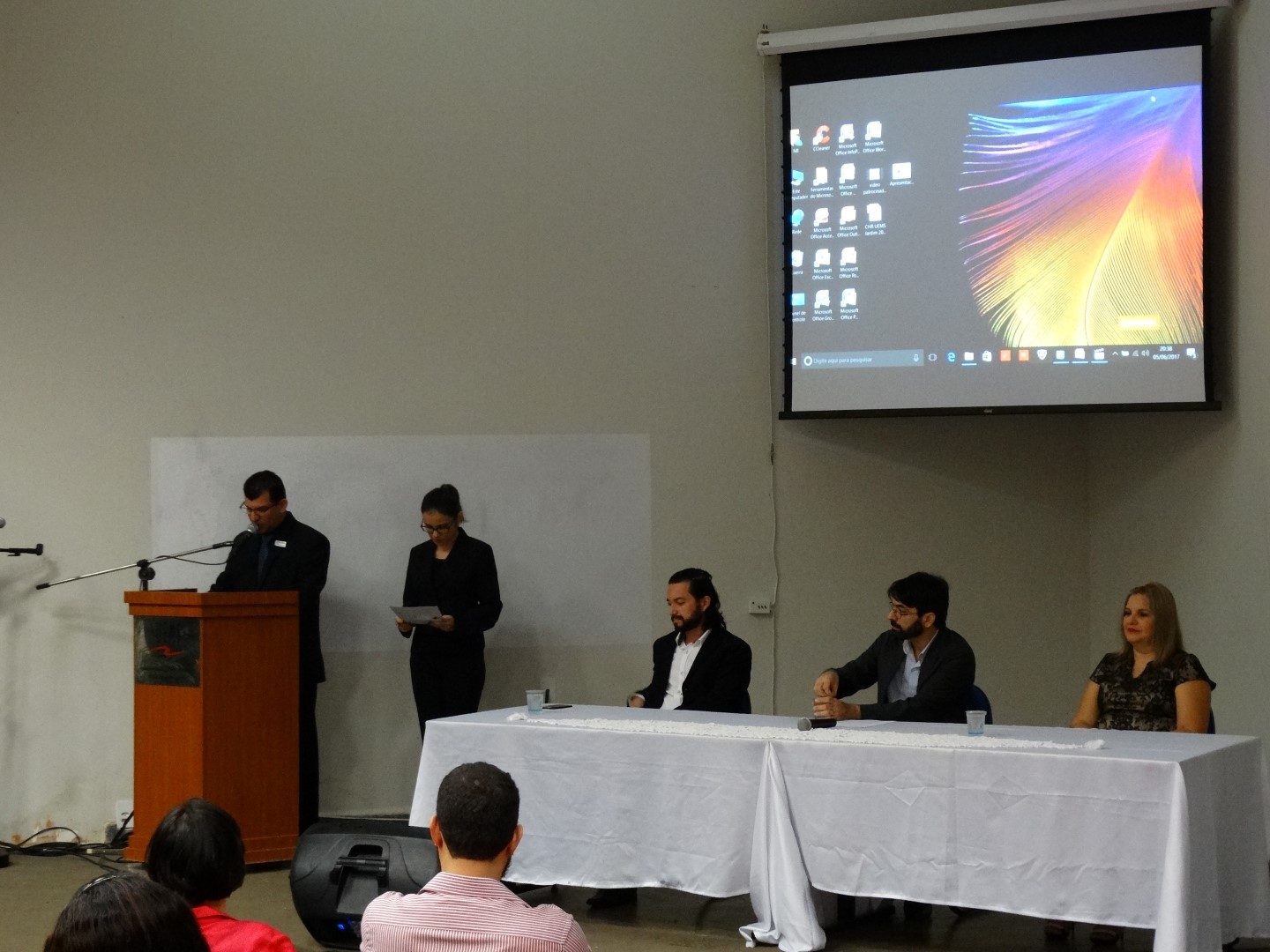 05/06/2017 - Abertura do evento - Prof. Dr. Neurivaldo Campos Pedroso Júnior (coordenador do curso de Letras), Prof. Dr. Marcos Vinícius Teixeira (coordenador da VII Semana de Letras) e Profa. Dra. Sandra Cristina de Souza (Gerente da UEMS - Jardim-MS)